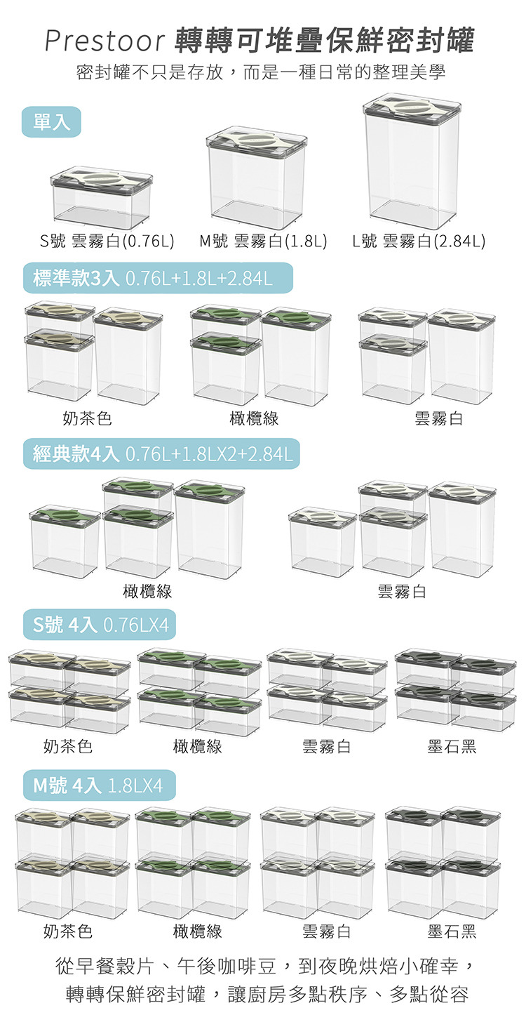 bzyoo Prestoor 轉轉可堆疊保鮮密封罐(單入)_雲霧白