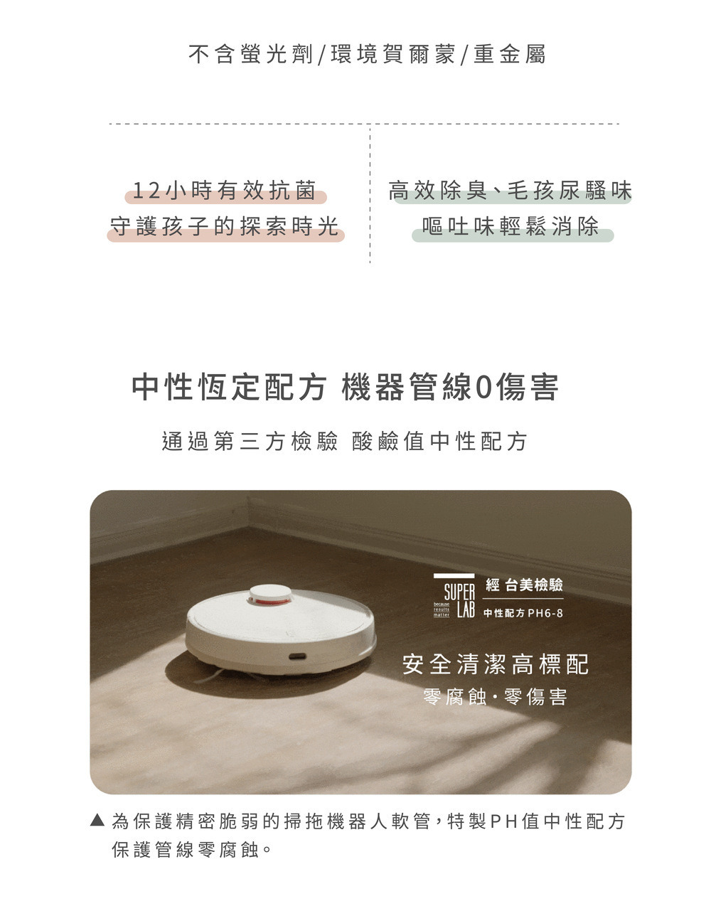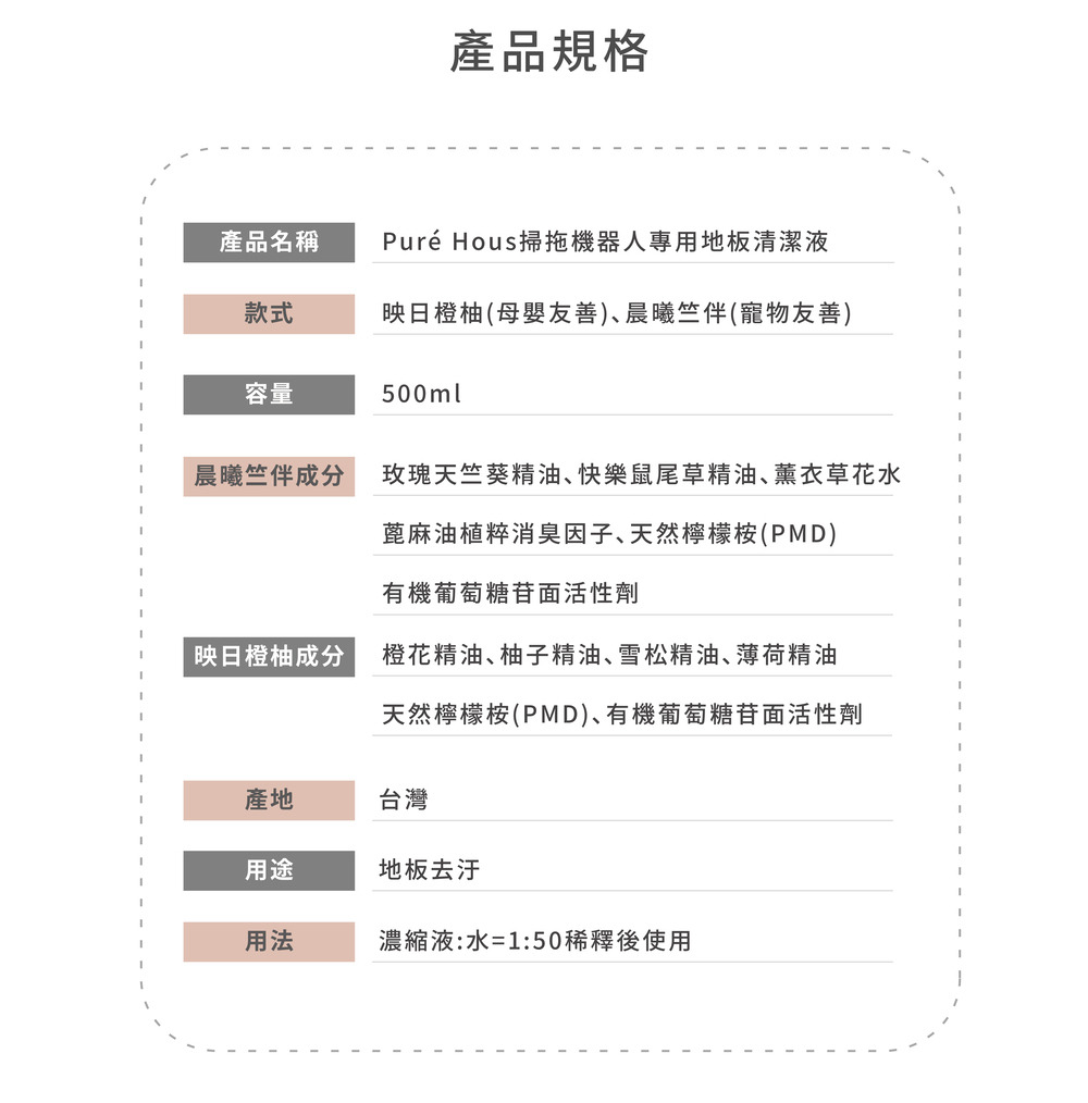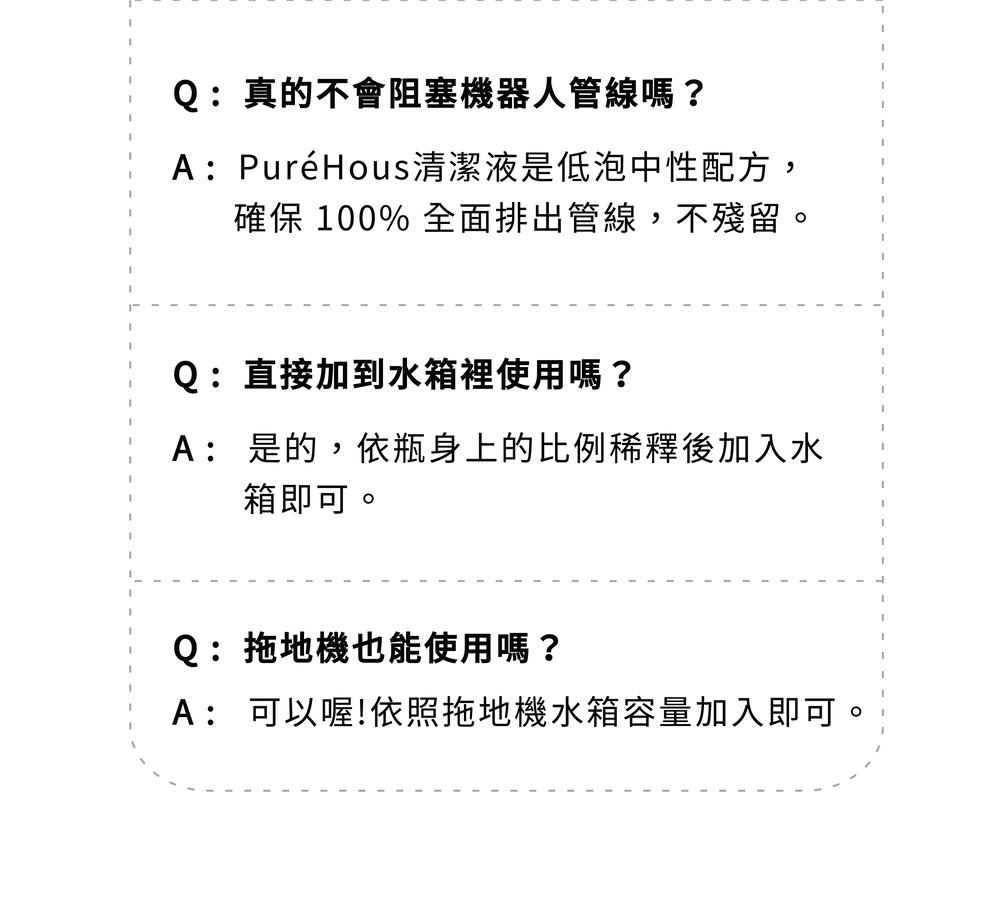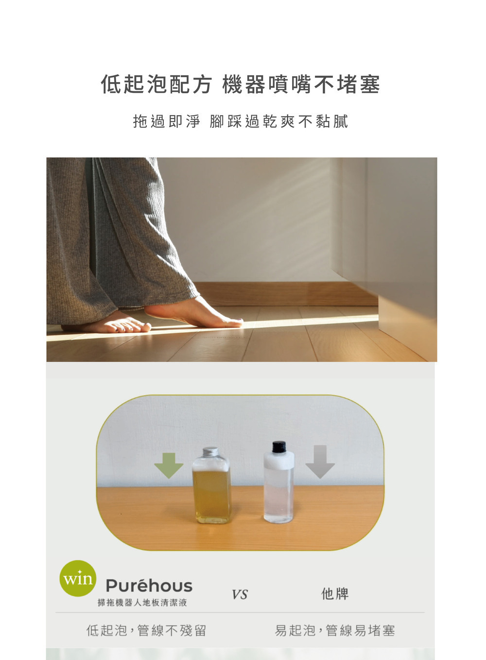 使用方法:本產品為濃縮液,請依照水箱容量以「清潔液:水=1ml:50ml」比例稀釋,直接倒入水箱即可。不須另外搖晃攪拌、不需再用清水拖過。